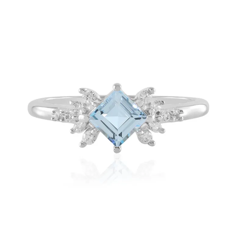 Dieser Ring aus himmelblauem Topas, der aus den sonnenverwöhnten Gegenden Brasiliens stammt, ist ein wahrer Augenschmaus. Das Herzstück ist ein quadratischer Topas im Stufenschliff von 0,723 Karat, der mit seinen kühlen Blautönen Ruhe ausstrahlt. Er wird fachmännisch von 12 kambodschanischen Zirkonen von insgesamt 0,190 Karat umrahmt, die dem Ensemble ein dezentes Funkeln verleihen. Der Ring ist aus hochwertigem 925er Sterlingsilber gefertigt und mit einer glänzenden Platinbeschichtung versehen, die ihm Haltbarkeit und Glanz verleiht. Ob in Kombination mit einem schicken Tagesoutfit oder als Farbakzent in der Abendgarderobe, er ist das perfekte Accessoire für jeden Anlass.