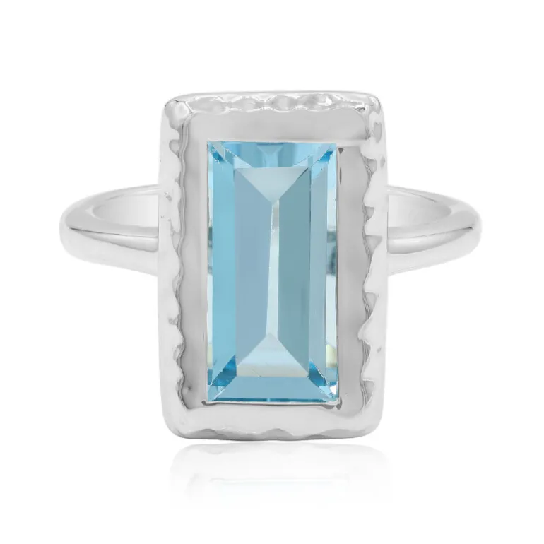 Entdecken Sie die Anziehungskraft des brasilianischen Himmels mit diesem heiteren Ring aus 2,82 Karat himmelblauem Topas. Der beeindruckende 12×6 mm große Edelstein im Baguetteschliff ist in poliertem 925er Sterlingsilber gefasst und ist ein Inbegriff von Eleganz. Sein subtiler blauer Farbton und sein elegantes Design machen ihn zu einem vielseitigen Schmuckstück, das sowohl tagsüber als auch abends getragen werden kann und jedem Ensemble einen Hauch von Eleganz verleiht. Als Teil der MONOSONO COLLECTION wird dieser Ring eine zeitlose Ergänzung Ihrer Schmucksammlung sein.