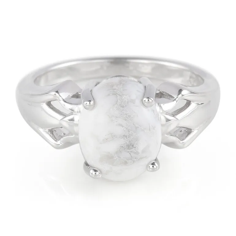 Dieser schicke Ring ist mit einem ovalen Cabochon aus kanadischem Howlite von 3,05 Karat besetzt, der in poliertem 925er Sterlingsilber gefasst ist. Das sanft marmorierte Weiß des Howlites wird elegant vom kühlen Glanz des Silbers umrahmt und schafft einen faszinierenden Kontrast, der sich sowohl für den Tag als auch für den Abend eignet. Kombinieren Sie ihn mit einer klassischen Bluse oder einem Abendkleid für einen Hauch von Raffinesse. Lassen Sie sich von der raffinierten Schönheit dieses Schmuckstücks verzaubern, das eine zeitlose Ergänzung für jede Schmucksammlung darstellt.
