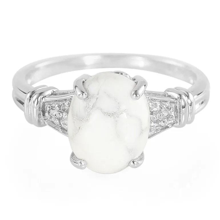 Entdecken Sie zeitlose Eleganz mit diesem atemberaubenden Howlite-Ring. Der ovale 2,95-karätige Cabochon aus Kanada steht im Mittelpunkt und wird von einem funkelnden weißen Topas aus Brasilien akzentuiert. Das aus 925er Sterlingsilber gefertigte Schmuckstück bietet einen raffinierten und modernen Look. Er eignet sich sowohl für den Alltag als auch für besondere Anlässe und passt hervorragend zu minimalistischen Outfits oder verleiht der Abendgarderobe einen eleganten Touch.