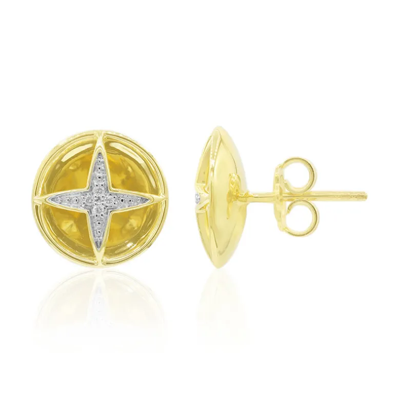 Entdecken Sie die Anziehungskraft unserer vergoldeten Ohrstecker aus 925er Sterlingsilber mit einem himmlischen Sternenmuster, das mit Diamanten im Brillantschliff (0,042 Karat) verziert ist. Mit einem Gewicht von ca. 3,43 g bieten diese schicken Ohrringe ein modernes Design, das die Jahreszeiten überdauert. Kombinieren Sie sie mühelos sowohl mit Ihrer Tages- als auch mit Ihrer Abendgarderobe und verleihen Sie ihnen einen Hauch von Raffinesse.
