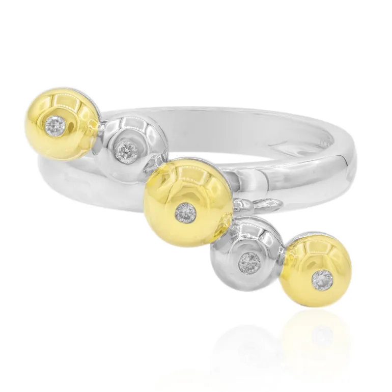 Unser schicker Diamant-Silberring ist ein modernes Schmuckstück, das mit einer zarten Goldplattierung einen Hauch von Luxus verleiht. Fünf Diamanten im Brillantschliff der Güteklasse I1 mit einem Gesamtgewicht von 0,05 Karat sind in hochwertiges 925er Sterling Silber mit einem ungefähren Gewicht von 3,62 Gramm gefasst. Der Ring hat eine Größe von 23 x 19 mm und ist damit ein wahrer Blickfang an der Hand. Dieser Ring eignet sich perfekt, um Ihre Tages- oder Abendgarderobe mit einem raffinierten Glitzern zu versehen und lässt sich nahtlos von der Bürokleidung bis zur Eleganz nach Feierabend kombinieren.