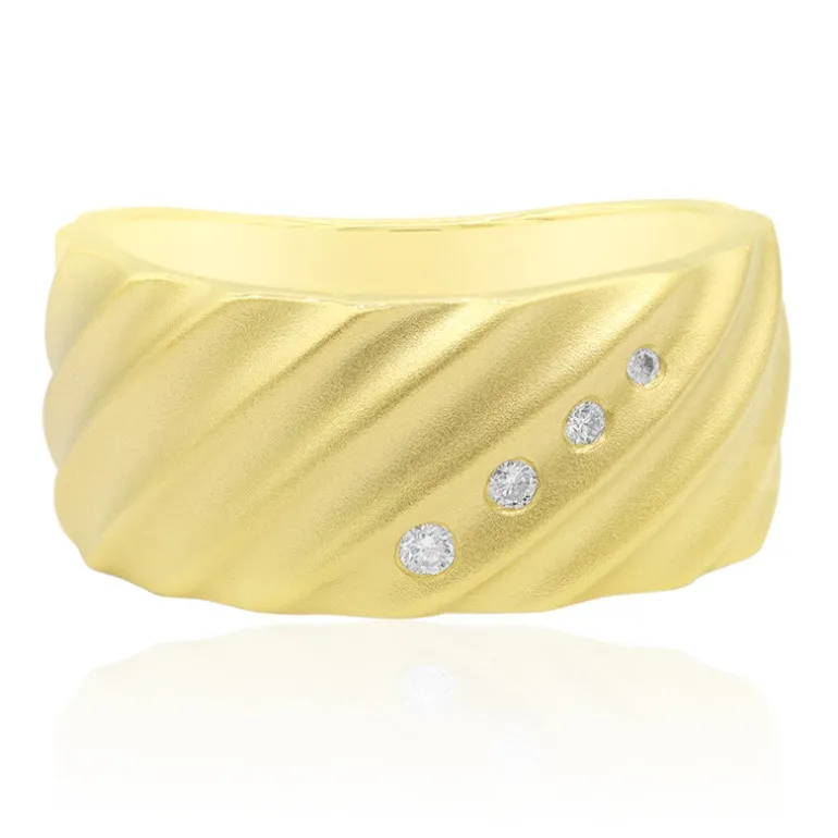 Entdecken Sie die raffinierte Anziehungskraft unseres Satiny Diamond Rings mit einem Quartett funkelnder Diamanten von insgesamt 0,039 Karat. Das glänzende, vergoldete 925er Sterlingsilberband besticht durch sein elegantes Twist-Design, das Ihrem Alltagsoutfit einen Hauch von Raffinesse verleiht. Dieses vielseitige Schmuckstück lässt sich sowohl zu legerem Chic als auch zur Abendgarderobe tragen. Sein subtiler und doch fesselnder Schimmer macht ihn zu einem idealen Accessoire für jede Gelegenheit.