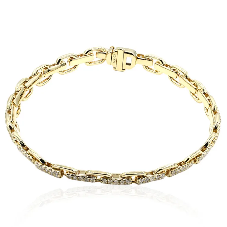 Entdecken Sie die raffinierte Mischung aus Luxus und Handwerkskunst mit unserem 18 cm langen Chic Diamond Bracelet. Dieses exquisite Schmuckstück ist mit 198 erstklassigen Diamanten der Reinheitsklasse I1 von insgesamt 2,1 Karat besetzt, die in einer harmonischen Mischung aus 585er Gelb- und Weißgold mit einem Gewicht von ca. 12,1 Gramm eingefasst sind. Die abwechselnden Goldtöne und der funkelnde runde Brillantschliff erzeugen einen Tanz des Lichts, der sowohl zum legeren Chic als auch zu gehobenen Anlässen passt. Tragen Sie dieses vielseitige Armband, um jedem Outfit einen Hauch zeitloser Eleganz zu verleihen.