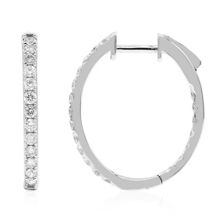 Entdecken Sie das zeitlose Funkeln dieser schicken Ohrringe aus 585er Weißgold, die mit 40 Diamanten im Brillantschliff von insgesamt 1,009 Karat besetzt sind. Die 23 mm großen Creolen sind mit Diamanten der Reinheit I1 besetzt und glänzen bei jeder Drehung. Sie eignen sich perfekt, um sowohl der Tages- als auch der Abendgarderobe einen Hauch von raffinierter Eleganz zu verleihen. Sie sind ein exquisites Geschenk oder eine luxuriöse Ergänzung Ihrer eigenen Kollektion.