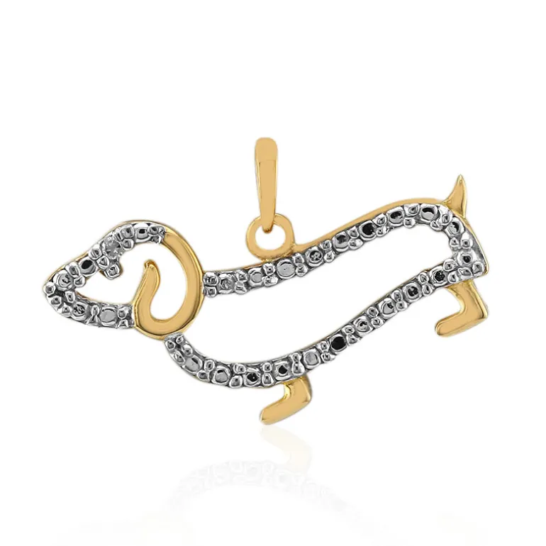 Dieser charmante Anhänger in Form eines Hundes ist mit I2-Diamanten besetzt, die in vergoldetes 925er Sterlingsilber gefasst sind, und verleiht Ihrer Schmucksammlung einen Hauch von Funkeln. Mit einer Größe von 17×26 mm ist er perfekt für Tierliebhaber und kann sowohl mit legeren als auch mit eleganten Outfits kombiniert werden. Dieser Anhänger ist ein wunderbares Geschenk oder ein persönliches Schmuckstück und verleiht jedem Anlass eine skurrile Eleganz.