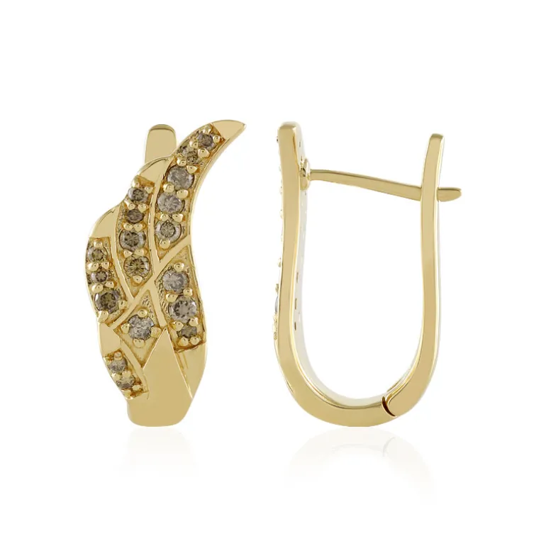 Genießen Sie die Eleganz dieser vergoldeten Sterlingsilber-Ohrringe mit 18 charmanten Schokoladen-Diamanten im runden Brillantschliff. Mit einem Gesamtgewicht von 0,708 Karat schimmern diese Ohrringe mit einer raffinierten Anziehungskraft. Ihr sanftes Wellendesign verleiht ihnen einen Hauch von modernem Flair, perfekt für die Abendgarderobe oder einen schicken Brunch-Look. Ein unverzichtbares Accessoire für jede Schmucksammlung.