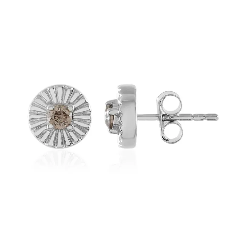 Entdecken Sie den subtilen Luxus dieser Ohrstecker aus 925er Sterlingsilber mit einem Paar champagnerfarbener Diamanten der Reinheit I3 von insgesamt 0,19 Karat. Jeder Diamant, der in einer Starburst-Silhouette gefasst ist, strahlt einen warmen, sprudelnden Glanz aus, der zu jedem Hautton passt. Die Plattierung verleiht diesem modernen, klassischen Design dauerhaften Glanz. Diese vielseitigen Ohrstecker eignen sich sowohl für das Büro als auch für die Abendgarderobe und sind eine zeitlose Ergänzung zu Ihrer Kollektion.