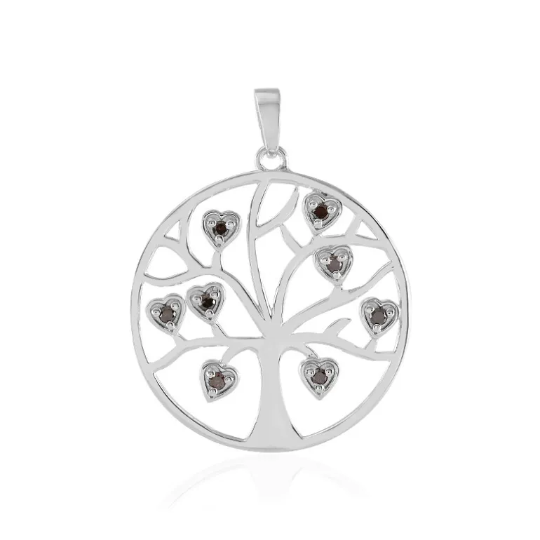 Dieser bezaubernde Anhänger zeigt ein stilisiertes Baumdesign, das wunderschön aus platiniertem 925er Sterlingsilber gefertigt ist. Die Zweige bilden ein verschlungenes Muster, das mit 8 I3 Chocolate Diamanten von insgesamt 0,197 ct besetzt ist, von denen jeder in einem runden Brillantschliff funkelt. Die künstlerische Darstellung der Schönheit der Natur misst 39×30 mm und ist ein vielseitiges Schmuckstück, das sich perfekt für eine Reihe von Outfits eignet, sowohl für legere als auch für formellere Anlässe. Für umweltbewusste und stilvolle Menschen ist er ein subtiles Statement für Eleganz und Verbundenheit mit der Erde.