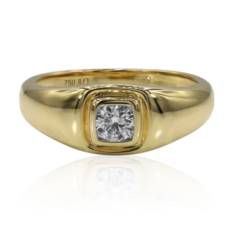 Dieser schicke Ring ist ein zeitloses Stück, das Raffinesse ausstrahlt. Ein prächtiger 0,25-karätiger Diamant mit einem tadellosen runden Brillantschliff schmiegt sich in die warme Umarmung von 750er 18K Gold und wiegt etwa 4,88 Gramm. Das schlichte Design passt sowohl zur Business- als auch zur Abendgarderobe und ist damit ein ideales Accessoire für legere Eleganz und formelle Anlässe.