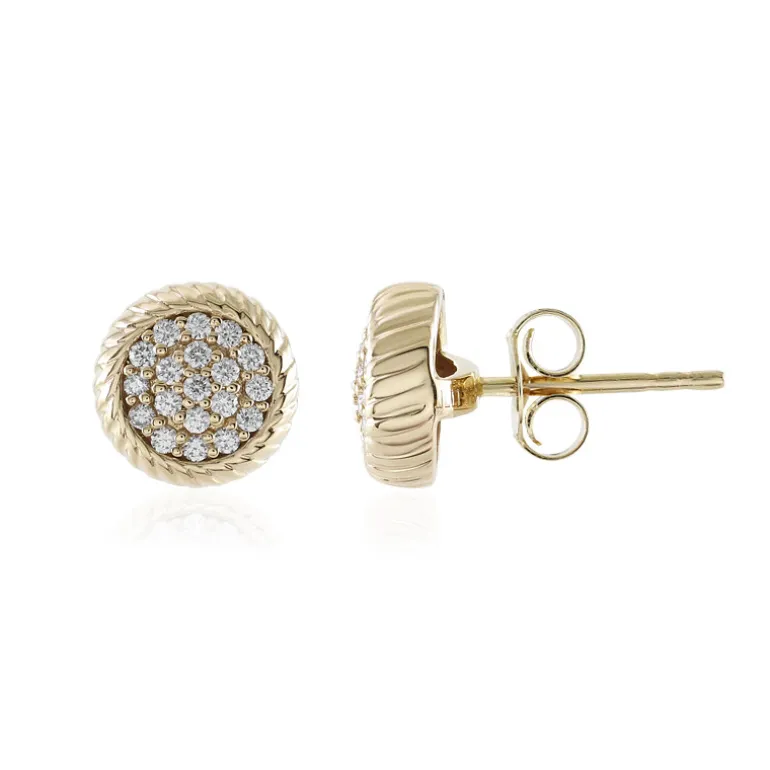 Diese klassischen Ohrstecker bestehen aus 38 lupenreinen Diamanten mit einem Gesamtkaratgewicht von 0,257 ct, die sorgfältig in runde 9-mm-Fassungen aus 9-karätigem Gold gefasst sind und ein elegantes Finish bieten. Die runden Steine im Brillantschliff strahlen ein unvergleichliches Funkeln aus und machen diese Ohrringe zu einer raffinierten Wahl sowohl für den eleganten Alltag als auch für besondere Anlässe. Kombinieren Sie sie mühelos mit einem professionellen Outfit oder einem Abendkleid, um einen Hauch von Luxus zu verleihen.