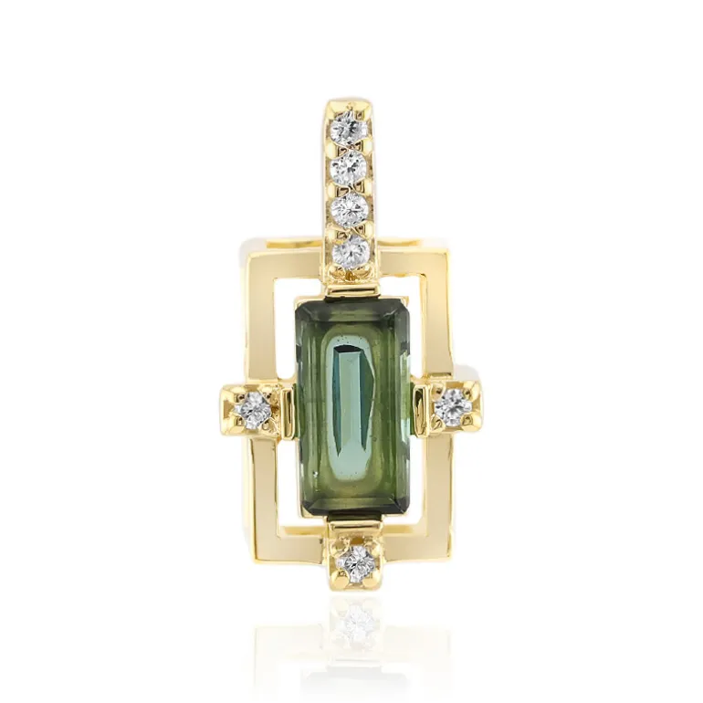 Entdecken Sie Raffinesse mit diesem exquisiten Indigolith-Anhänger aus vergoldetem Sterlingsilber. Der stilvolle Indigolith im Achteck-Schliff aus Brasilien wird durch sieben funkelnde kambodschanische Zirkone elegant ergänzt, wodurch eine perfekte Farbharmonie entsteht. Ideal für formelle Anlässe: Kombinieren Sie diesen Anhänger mit einem klassischen schwarzen Kleid oder einer schicken Abendgarderobe, um Ihren raffinierten Stil zu unterstreichen.