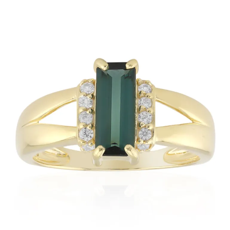 Dieser exquisite Ring zeigt einen auffälligen Indigolithen aus Brasilien, der elegant in einem achteckigen Stufenschliff geschliffen ist. Die Edelsteine werden von 12 funkelnden Zirkonen aus Kambodscha akzentuiert und sind wunderschön in 925er Sterlingsilber mit einer luxuriösen Goldplattierung gefasst. Dieser Ring eignet sich perfekt für abendliche Anlässe oder als raffinierter Begleiter im Alltag und ist ein Beweis für raffinierte Handwerkskunst und zeitlose Eleganz.
