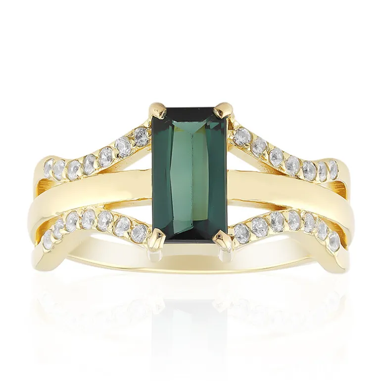 Entdecken Sie die Faszination dieses vergoldeten Indigolith-Silberrings. Der atemberaubende Indigolith im Smaragdschliff von 1,007 Karat aus Brasilien wird von 28 schimmernden Zirkonen aus Kambodscha veredelt. Der Ring ist aus 925er Sterlingsilber gefertigt, elegant vergoldet und wiegt ca. 3,5 g. Er eignet sich sowohl für den eleganten Alltag als auch für besondere Anlässe und lässt sich wunderbar mit Abendkleidern kombinieren, die einen raffinierten Touch haben.