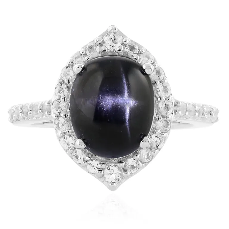 Indischer Stern Diopsid & Weißer Topas Silber Ring, 3,51ct