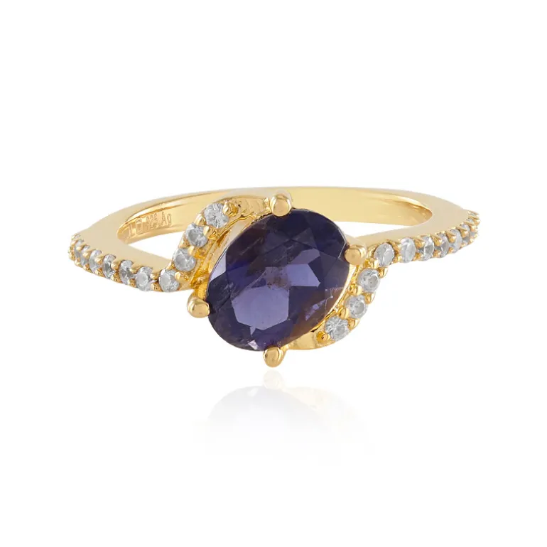 Dieser Ring aus vergoldetem 925er Sterlingsilber mit einem atemberaubenden indischen Iolith von 0,926 Karat im Ovalschliff bezaubert Ihre Hand. Akzentuiert durch funkelnde kambodschanische Zirkone von insgesamt 0,261 ct, strahlt der Ring zeitlose Eleganz aus. Er ist perfekt geeignet, um sowohl Ihrer Tages- als auch Ihrer Abendgarderobe einen raffinierten Touch zu verleihen. Der tiefblaue Farbton des Edelsteins hebt sich wunderschön von dem goldenen Schimmer ab und macht den Ring zu einer exquisiten Wahl für besondere Anlässe oder als wertvolles Geschenk.