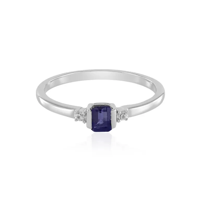 Dieser exquisite Ring präsentiert das tiefe Blau des indischen Ioliths, gefasst in glänzendem 925er Sterlingsilber mit einer Platinveredelung für zusätzliche Brillanz. Flankiert von zwei funkelnden Zirkonen mit einem Gesamtgewicht von 0,065 ct, wird der 0,388 ct Iolith, der in einer eleganten Achteckform geschliffen ist, zum Herzstück dieses anmutigen Designs. Mit einem Gesamtkaratgewicht von 0,453 Karat misst der Ring schlichte 21×19 mm und eignet sich perfekt für den Alltag oder den glamourösen Abend. Ideal für alle, die einen Hauch von Farbe und raffiniertem Stil suchen.