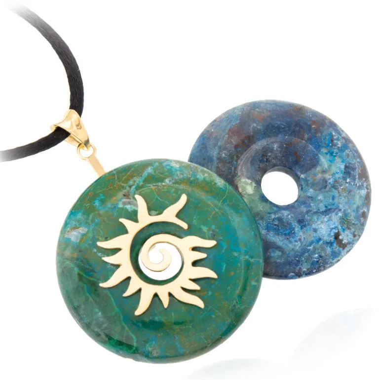 Entdecken Sie die Anziehungskraft natürlicher Schönheit mit unserem Chrysokoll- und Shattuckit-Anhänger-Set. Die aus 925er Sterling Silber gefertigten Edelsteine aus Peru und Namibia haben einen exquisiten Fantasieschliff. Perfekt, um jedem Outfit einen Hauch von Eleganz zu verleihen, sei es für einen lässigen Tagesausflug oder eine besondere Abendveranstaltung. Kombinieren Sie sie mit neutralen Tönen oder tiefen Blautönen, um die atemberaubenden Farben dieser Steine zu betonen.