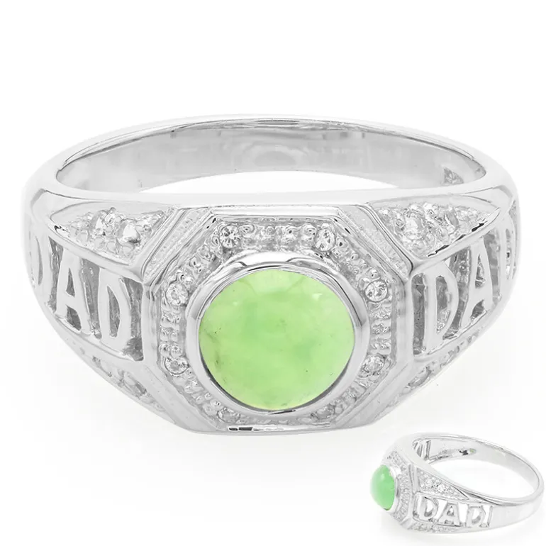 Entdecken Sie die Eleganz dieses auffälligen Herrenrings mit einem kaiserlichen australischen Chrysopras, gefasst in 925er Sterlingsilber. Der einzigartige runde Cabochon in der Mitte wird von einem schimmernden weißen Topas aus Brasilien akzentuiert und versprüht einen raffinierten Charme. Dieser Ring ist ein ideales Accessoire für formelle Anlässe und wertet jedes Outfit mit seinem raffinierten Design mühelos auf.