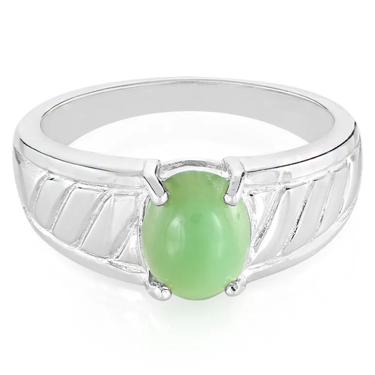 Entdecken Sie die Anziehungskraft des Imperial Chrysopras Silberrings für Herren mit einem auffälligen ovalen Cabochon von 1,09 Karat aus Australien. Dieser elegante Ring aus 925er Sterlingsilber mit einem Gewicht von 5,14 g eignet sich perfekt für formelle Anlässe oder als raffinierte Ergänzung zur Alltagskleidung und strahlt zeitlose Eleganz und raffinierten Stil aus.