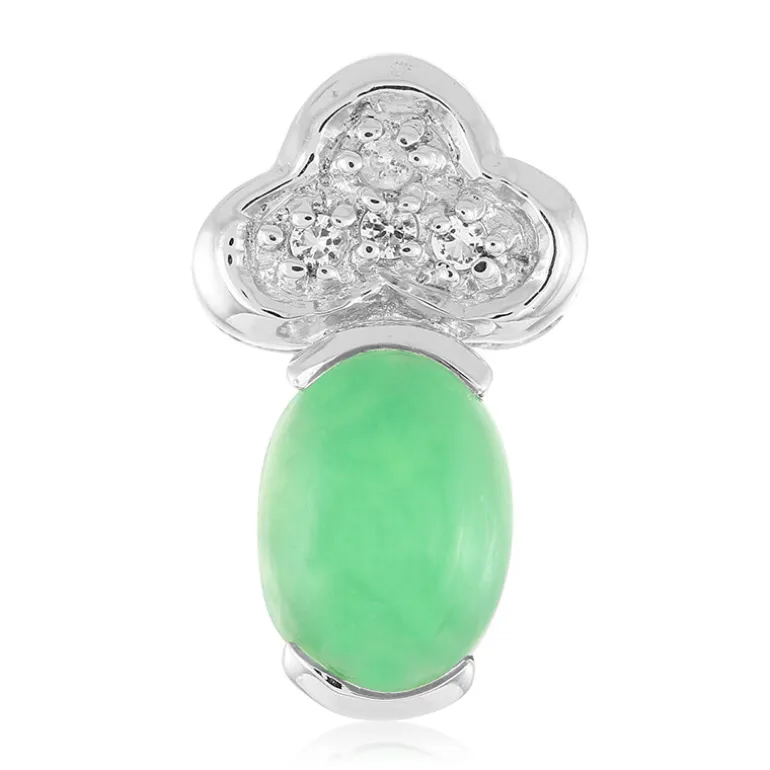 Entdecken Sie die lebendige Anziehungskraft dieses exquisiten Anhängers aus australischem Chrysopras, gekrönt von einer Konstellation aus brasilianischem Weißtopas. Der ovale Chrysopras-Cabochon von 1,28 Karat, gefasst in 925er Sterlingsilber, ist ein atemberaubendes Beispiel für die Schönheit der Natur, ergänzt durch das Funkeln der Topas-Akzente. Perfekt, um Ihrem Alltagsoutfit einen Hauch von Eleganz zu verleihen oder eine besondere Abendgarderobe aufzuwerten.