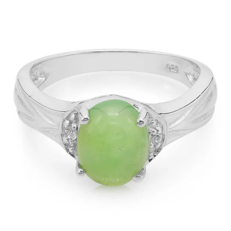 Entdecken Sie die Faszination dieses eleganten Rings aus Sterlingsilber mit einem ovalen Chrysopras aus Australien, der von zwei brillanten weißen Topasen aus Brasilien ergänzt wird. Mit einem Gesamtkaratgewicht von 1,461 ct strahlt dieses Stück Raffinesse aus. Er eignet sich sowohl für formelle Anlässe als auch für zwanglose Ausflüge und passt sowohl zu Abendkleidern als auch zu legerer Kleidung, was ihn zu einer vielseitigen Ergänzung für jede Schmucksammlung macht.