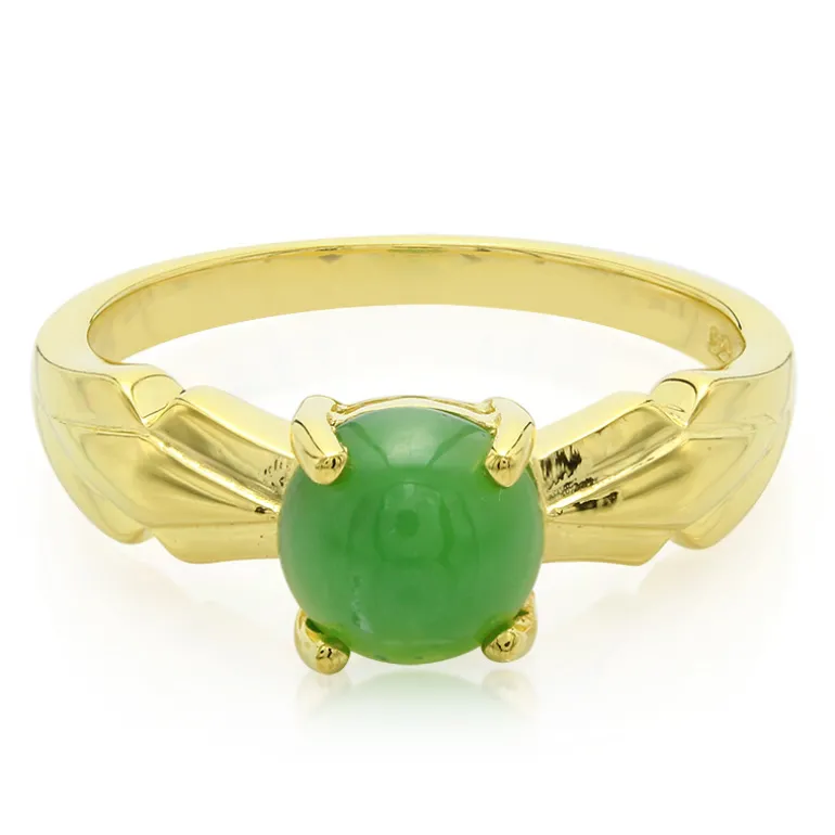 Entdecken Sie die Faszination des vergoldeten Silberrings Chrysopras mit einem runden Cabochon von 0,91 Karat aus Australien. Der elegante Ring aus 925er Sterlingsilber mit luxuriöser Goldplattierung wiegt 2,33 g. Er ist perfekt, um jedem Outfit Raffinesse zu verleihen, und eignet sich sowohl für legere als auch für formelle Anlässe und passt gut zu erdfarbener oder grüner Kleidung.