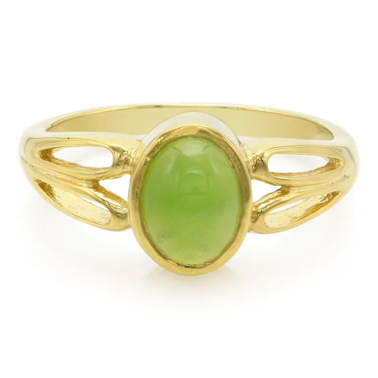 Ein fesselndes Stück, das Eleganz und Raffinesse ausstrahlt. Dieser Imperial Chrysopras-Ring enthält einen ovalen Cabochon von 0,7 Karat aus Australien, gefasst in 925er Sterlingsilber mit einer strahlenden Goldplattierung. Dieser Ring eignet sich für jeden Anlass und verleiht sowohl lässigen als auch formellen Outfits einen Hauch von Luxus und Stil. Sein einzigartiges Design und seine leuchtende Farbe machen ihn zu einem auffälligen Accessoire.