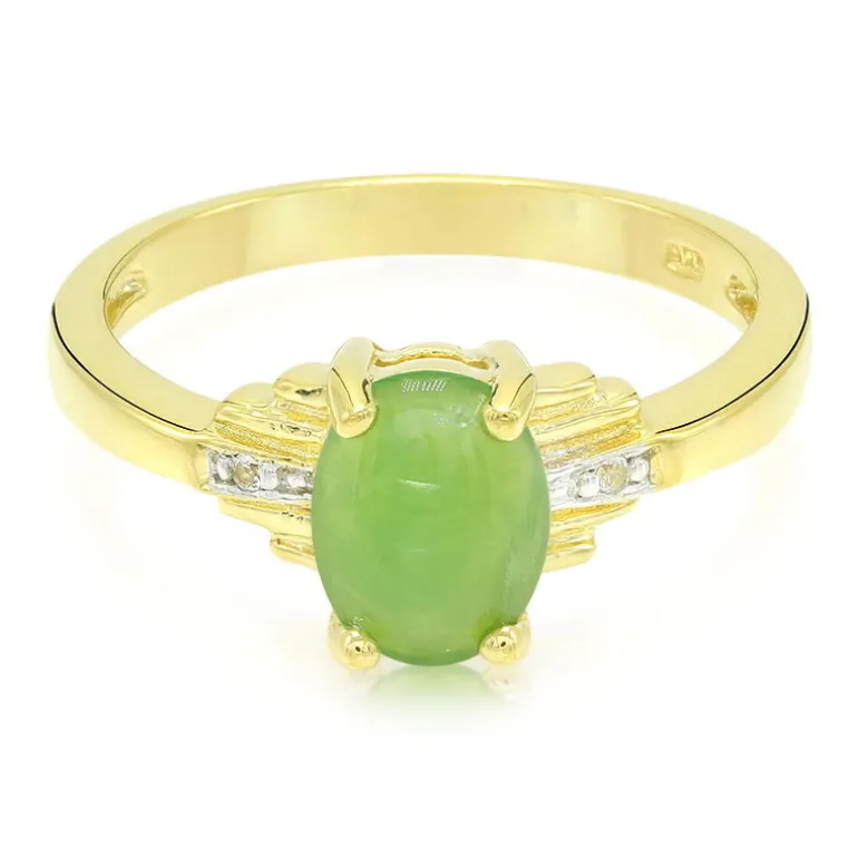 Entdecken Sie die Eleganz dieses bezaubernden Rings mit einem ovalen Chrysopras aus Australien, der von einem brasilianischen weißen Topas zart ergänzt wird. Das aus vergoldetem 925er Sterlingsilber gefertigte Schmuckstück strahlt Raffinesse aus. Er ist ideal für den Abend oder besondere Anlässe und passt sowohl zu formeller Kleidung als auch zu eleganten Abendkleidern und setzt ein subtiles und doch auffälliges Zeichen.