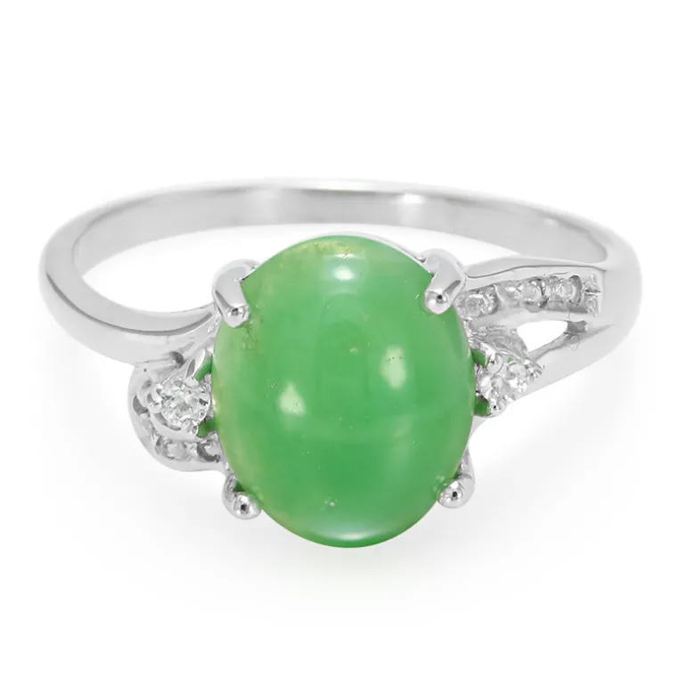 Entdecken Sie die Eleganz dieses exquisiten Chrysopras-Rings mit einem ovalen Cabochon von 2,19 Karat aus Australien und funkelnden Zirkon-Akzenten aus Kambodscha. Der aus 925er Sterlingsilber gefertigte Ring kombiniert ein zeitloses Design mit leuchtenden Grüntönen. Er eignet sich sowohl für den Alltag als auch für besondere Anlässe und passt sowohl zu legeren als auch zu formellen Anlässen.