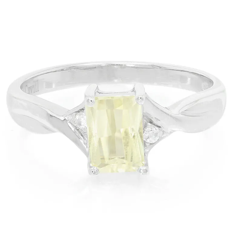 Wir präsentieren einen exquisiten kanariengelben Kunzit-Ring aus platiniertem 925er Sterlingsilber. Der brasilianische Kunzit im Oktagon-Schliff von 1,03 Karat wird durch zwei kambodschanische Zirkone im Brillantschliff wunderbar ergänzt. Dieser Ring ist perfekt für jede Gelegenheit und verleiht jedem Outfit einen Hauch von Eleganz, egal ob es sich um ein Abendkleid oder ein Freizeitoutfit handelt. Ideal für alle, die Raffinesse suchen.
