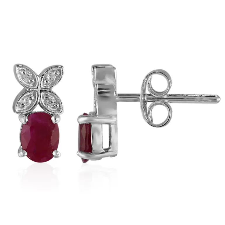 Lassen Sie sich vom Charme der Natur verzaubern mit diesen von Schmetterlingen inspirierten Ohrringen. Ovale Rubine aus Kenia mit 0,783 Karat und funkelnde Zirkone aus Tansania mit rundem Schliff mit insgesamt 0,036 Karat. Die Fassung aus 925er Sterlingsilber unterstreicht die Schönheit mit einer Platinveredelung, die Haltbarkeit und Glanz bietet. Diese Ohrringe sind sowohl für den Tag als auch für den Abend geeignet. Sie passen zu jedem Outfit und sind eine vielseitige Ergänzung Ihrer Schmucksammlung.