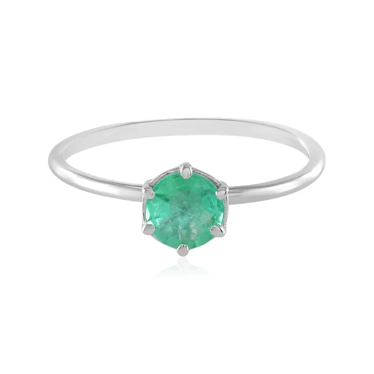 Entdecken Sie den verführerischen Charme dieses kolumbianischen Smaragdrings, der aus feinstem 950er Platin gefertigt ist. Mit einem 0,45 Karat großen Edelstein im Rundschliff strahlt dieser Ring Raffinesse aus. Die sanfte Umarmung des hochwertigen Platinbandes mit einem Gewicht von ca. 1,37 Gramm sorgt für einen bequemen und dauerhaften Sitz. Dieser Ring eignet sich perfekt für besondere Anlässe oder als Lieblingsstück für jeden Tag und verleiht jedem Outfit einen Hauch von Eleganz. Kombinieren Sie ihn sowohl mit formellen als auch mit legeren Outfits, um eine klassische und zeitlose Ergänzung zu Ihrer Schmucksammlung zu erhalten.