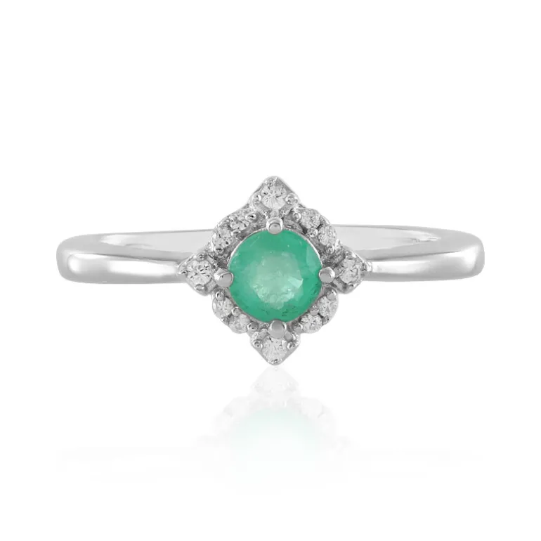 Dieser atemberaubende Ring zeigt die faszinierende Schönheit eines echten kolumbianischen Smaragds in seinem Zentrum. Der rundgeschliffene Smaragd von 0,343 Karat mit seinem bezaubernden grünen Farbton wird durch eine Reihe funkelnder kambodschanischer Zirkon-Akzente von insgesamt 0,101 Karat ergänzt. Das Band aus 925er Sterlingsilber, das elegant mit Platin überzogen ist, verleiht ihm zeitlose Eleganz. Ob für einen besonderen Anlass oder im Alltag, dieses Schmuckstück ist perfekt, um jedem Outfit einen Hauch von Luxus zu verleihen.