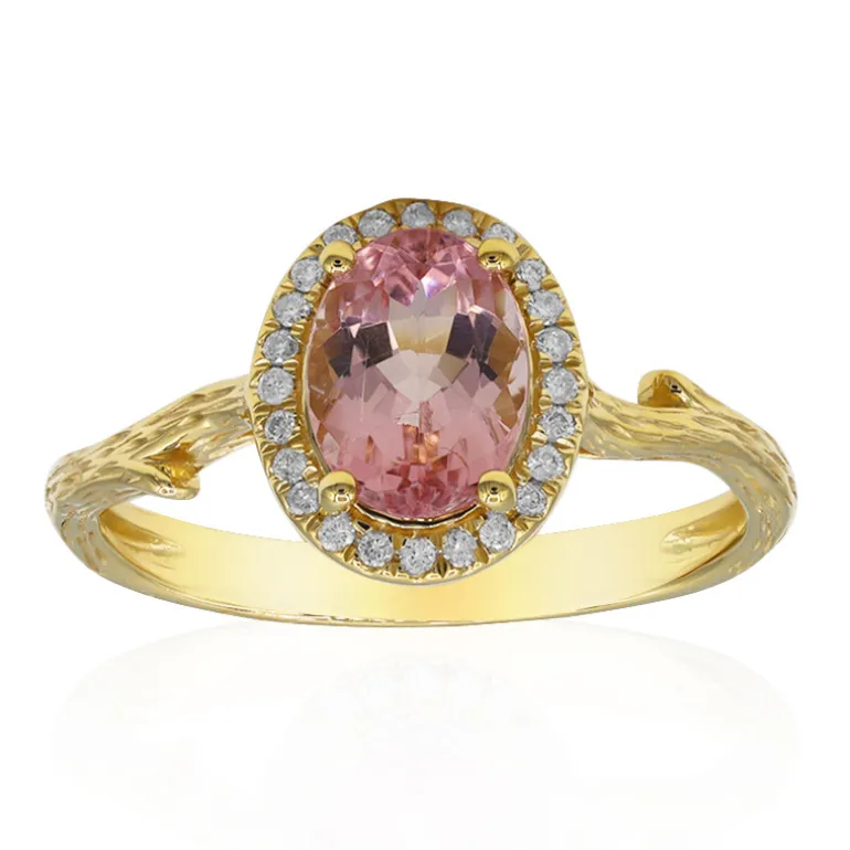 Tauchen Sie ein in den faszinierenden Glanz dieses Rings aus 14 Karat Gelbgold mit einem 1,28 Karat schweren Neonturmalin aus der Demokratischen Republik Kongo im Zentrum, der einen verführerischen Ovalschliff aufweist. Umgeben von einem Halo aus 24 Diamanten im Brillantschliff von insgesamt 0,087 Karat, funkelt das Schmuckstück bezaubernd. Das gedrehte Goldband verleiht dieser klassischen Eleganz eine moderne Note und macht sie zu einem idealen Schmuckstück für den Tag und den Glamour am Abend. Perfekt, um einem neutralen Ensemble einen Farbakzent zu verleihen oder ein leuchtendes Cocktailkleid zu ergänzen.