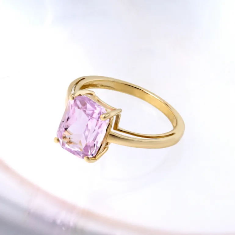 Dieser exquisite Ring besticht durch seine schlichte Eleganz. Der 2,49 Karat schwere afghanische Kunzit im achteckigen Schliff ist perfekt in strahlendes 375er Gelbgold gefasst. Sein subtiler rosa Farbton und die gut definierten Kanten machen ihn zu einer raffinierten Wahl für jeden Anlass. Ob für einen eleganten Abend oder ein legeres Tagesereignis, dieses Schmuckstück verspricht, Ihr Ensemble mit einem Hauch von raffinierter Schönheit zu ergänzen.