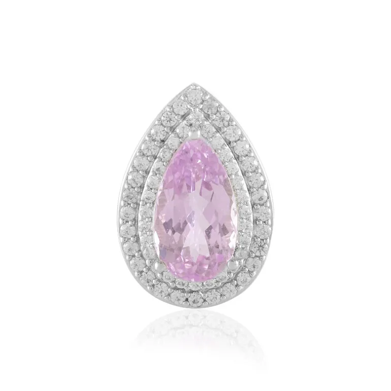 Entdecken Sie Eleganz mit diesem auffälligen afghanischen Kunzit-Anhänger. Ein birnenförmiger Brillant von 3,875 Karat wird von schimmernden kambodschanischen Zirkonen in platiniertem 925er Sterlingsilber eingerahmt. Dieses Schmuckstück ist perfekt für besondere Anlässe und passt zu eleganter Abendgarderobe oder verleiht Ihrem Alltagslook einen Hauch von Glamour.