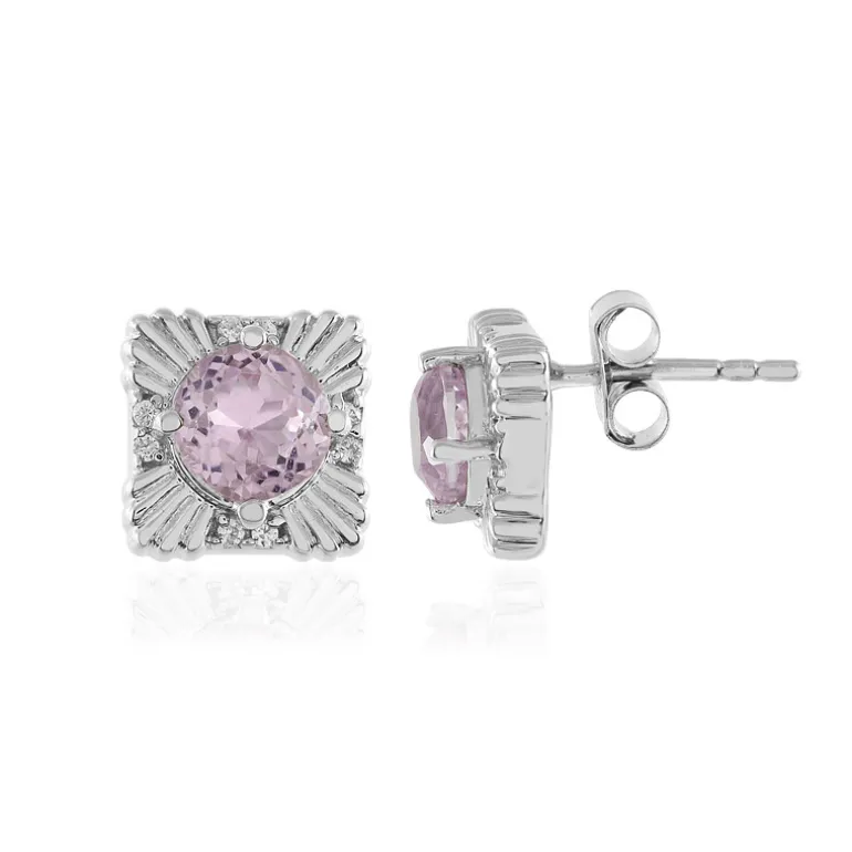 Entdecken Sie den subtilen Charme dieser Ohrringe aus Sterlingsilber, die jeweils mit einem Kunzit im Rundschliff von 1,885 Karat aus den ruhigen Landschaften Afghanistans geschmückt sind, umrahmt von einem strahlenden Zirkon aus Kambodscha. Die Plattierung über dem 925er Sterlingsilber sorgt für Langlebigkeit und zusätzlichen Glanz, der bei jeder Drehung Ihres Kopfes einen Hauch von Raffinesse vermittelt. Diese Ohrringe sind ein vielseitiges Accessoire, das sich sowohl für die Eleganz des Alltags als auch für besondere Anlässe eignet. Kombinieren Sie sie mit einem pastellfarbenen Ensemble, um ihren sanften Farbton hervorzuheben, oder verleihen Sie einem klassischen kleinen schwarzen Kleid einen Hauch von Farbe.