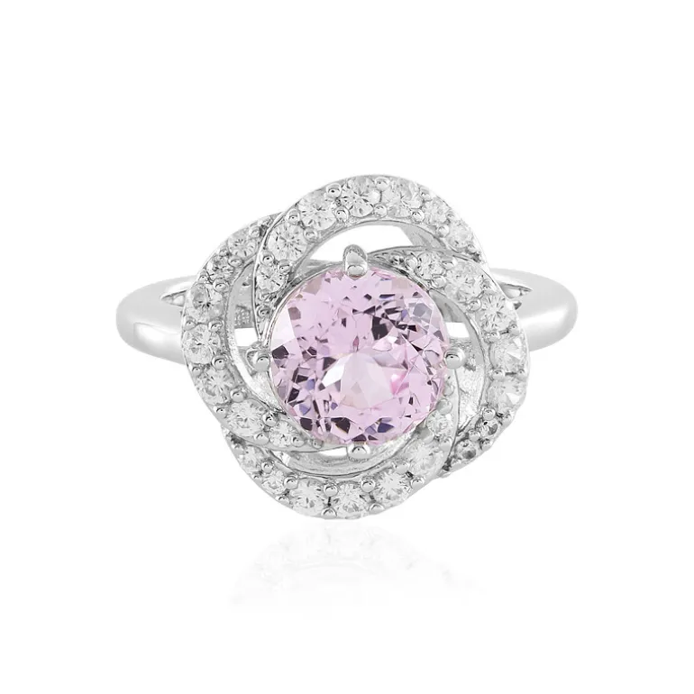 Afghanischer Pinker Kunzit & Zirkon Platinplattierter Silberring
