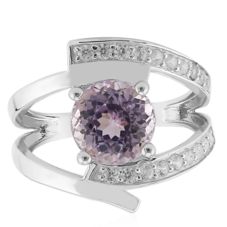 Afghanischer Kunzit & kambodschanischer Zirkon Silberring, 2,83ct