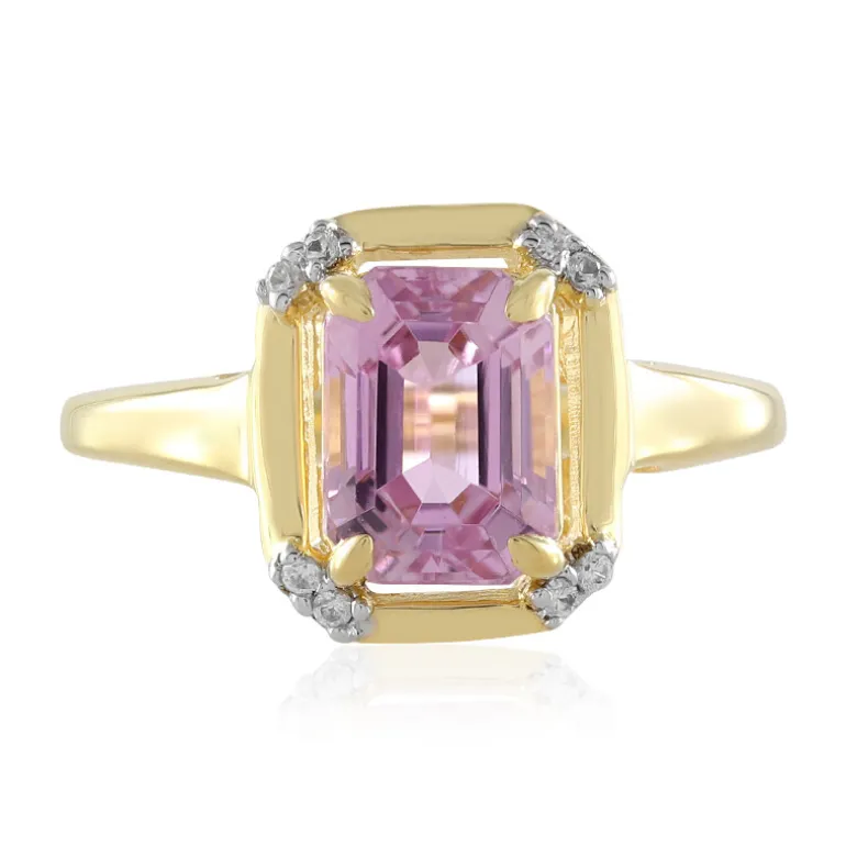 Entdecken Sie die Eleganz unseres Kunzit-Rings mit einem bezaubernden 1,818-karätigen Edelstein im Achteckschliff aus Brasilien. Die Fassung ist mit kambodschanischen Zirkon-Akzenten verziert und besteht aus glänzendem, vergoldetem 925er Sterlingsilber. Dieser Ring eignet sich sowohl für legere als auch für formelle Anlässe. Er lässt sich wunderbar mit Abendkleidung oder einer schicken Bluse kombinieren und verleiht jedem Ensemble einen Hauch von Raffinesse.