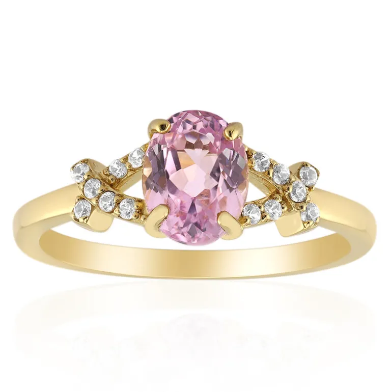 Entdecken Sie die Anziehungskraft dieses afghanischen Kunzit-Rings, gekrönt von einem 1,536 Karat schweren, oval geschliffenen Edelstein in zarten Rosatönen. Der Kunzit wird perfekt umrahmt von funkelnden Zirkon-Akzenten aus Kambodscha von insgesamt 0,146 Karat, die in vergoldetem 925er Sterlingsilber gefasst sind und ihm einen zusätzlichen Hauch von Eleganz verleihen. Mit seinem modernen Charme und seiner zeitlosen Anziehungskraft ist dieser Ring eine vielseitige Ergänzung für jede Kollektion – ideal, um die Bürokleidung aufzuwerten oder ein schickes Abendkleid zu ergänzen.