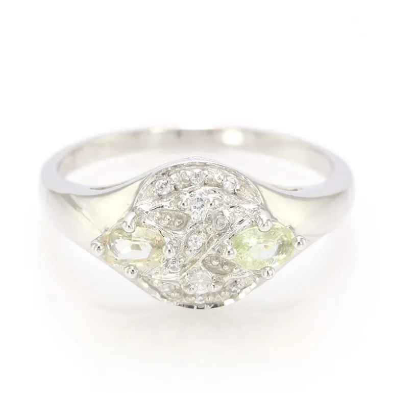 Dieser exquisite Ring zeigt die subtile Schönheit des Kupferturmalins, akzentuiert durch das Funkeln des kambodschanischen Zirkons. Mit einem Gesamtgewicht von 0,32 Karat sind die Turmaline in der Mitte zu einer verführerischen ovalen Form geformt, die durch die runden Zirkonsteine im Brillantschliff ergänzt wird. Der Ring ist aus platiniertem 925er Sterling Silber gefertigt, was ihm zusätzlichen Glanz verleiht. Mit seinem Gewicht von 2,84 g fühlt er sich massiv an. Er eignet sich perfekt, um jedem Outfit einen Hauch von Raffinesse zu verleihen und ist eine außergewöhnliche Wahl für Abendveranstaltungen oder als einzigartige Ergänzung zu einem Tageslook.