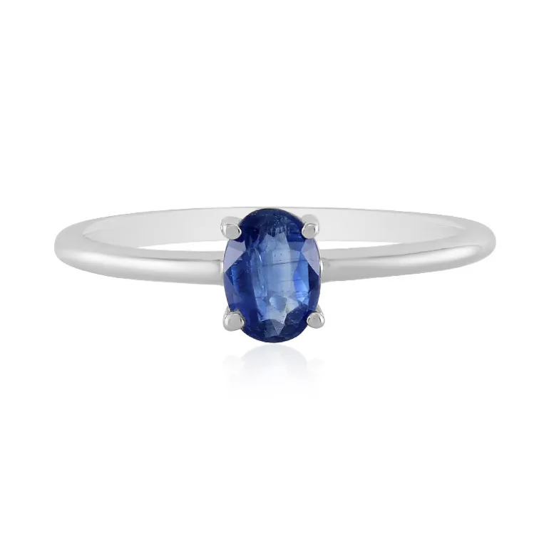 Entdecken Sie die ruhige Schönheit des afghanischen Kyanits mit diesem raffinierten Ring aus platiniertem 925er Sterlingsilber. Der oval geschliffene Stein mit einem Gewicht von 1,03 ct ist ein wahres Wunderwerk, das mit seinen tiefblauen Farbtönen seine hochwertige Herkunft widerspiegelt. Mit einer Größe von etwa 7×5 mm hat der Edelstein die perfekte Größe für Eleganz. Dieser Ring ist ein ideales Accessoire, um der Berufskleidung einen Hauch von Klasse zu verleihen oder einem legeren Ensemble einen raffinierten Schliff zu verleihen. Das vielseitige Design dieses Rings verspricht, jeden Look zu ergänzen.