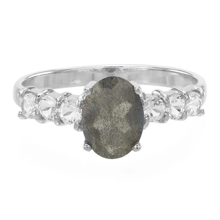 Madagaskar Labradorit & Weißer Topas Silber Ring, 1,03ct