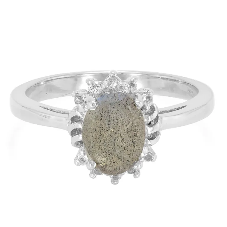 Entdecken Sie die bezaubernde Schönheit unseres Labradorit-Silberrings aus Madagaskar, der den schillernden Charme eines Labradorits von 1,05 Karat im Ovalschliff mit dem Schimmer von zehn brasilianischen Weißtopasen verbindet. Gefertigt aus hochwertigem 925er Sterlingsilber, strahlt dieses Schmuckstück einen ätherischen Glanz aus. Es ist ideal, um jedem Ensemble einen Hauch von Geheimnis zu verleihen und passt sowohl zur Tages- als auch zur Abendgarderobe.