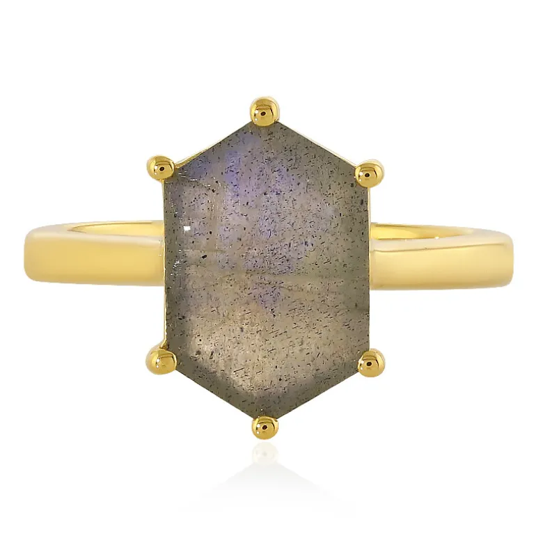 Madagaskar Labradorit Goldplattierter Silberring, 2,876ct