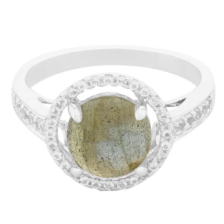 Madagaskar Labradorit & Weißer Topas Silber Ring, 2,04ct