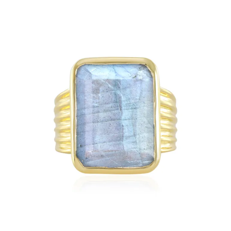 Madagaskar Labradorit Goldplattierter Silberring, 9,25 ct