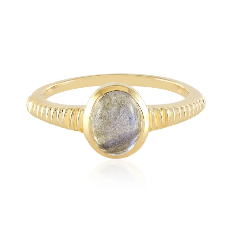 Dieser atemberaubende Ring besteht aus einem ovalen Labradorit-Cabochon aus Madagaskar mit einem Farbenspiel von 1,53 Karat, eingefasst in ein glänzendes Band aus vergoldetem 925er Sterling Silber. Das bezaubernde Schillern des Steins in Verbindung mit den warmen Goldtönen macht ihn zu einem vielseitigen Schmuckstück, das sich sowohl für Freizeitkleidung als auch für besondere Anlässe eignet. Kombinieren Sie dieses raffinierte Accessoire mit Ihrem Lieblingsoutfit für einen zusätzlichen Hauch von Raffinesse.